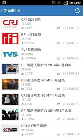 每天更新的海量聽(tīng)力庫(kù)RFI Franrais facile 、CRI 等新聞?lì)l道每天更新