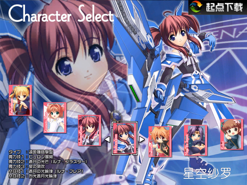 奈葉 『魔法少女奈葉A's』(高町奈葉.遠(yuǎn)距離炮擊型.是最初的角色,被作為開(kāi)發(fā)其他全部人物的基準(zhǔn))菲特 『魔法少女奈葉A's』(Fate.中距離萬(wàn)能型,所有角色中唯一可以切換中/近戰(zhàn)模式角色)