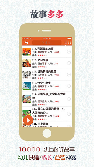 兒童故事是開啟兒童智慧大門的一把鑰匙。聽故事可以豐富兒童知識(shí), 同時(shí)提升思維能力和想象能力, 促進(jìn)兒童的思維更加細(xì)微準(zhǔn)確, 想象更加斑斕、開闊。讓兒童插上一雙有聲的翅膀, 遨游在故事的海洋中。必聽兒童故事是少年兒童的童年好伙伴和良師益友。 這里有最美好的童話寓言、最經(jīng)典的歷史故事、最好聽的成語故事、國內(nèi)外最著名的小說…媽媽再也不用為每天小孩睡前故事犯愁了, 輕輕開啟你的iPhone或iPad, 選好故事, 設(shè)定收聽時(shí)長, 好了, 今天的故事開始了…【更新日志】