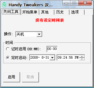 HandyTweakers是一個可以設(shè)置自動將電腦關(guān)機(jī),非常方便,還可以禁用和(或)啟用開始菜單的相關(guān)項目,可以快速關(guān)閉顯示器和(或)鎖定電腦,清除歷史記錄等....