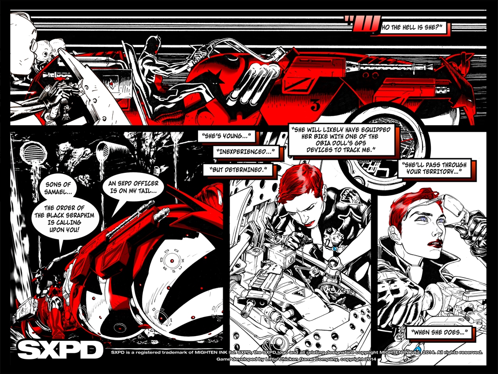 SXPD漫游世界游戲背景設(shè)置在虛構(gòu)的美國新皇家 (New Royale)都市,講述了一場代號為 SXPD 的行動。玩家將扮演行動中一名新近女警與犯罪份子在公路展開急速斗爭,過程驚險而又刺激。游戲中有著豐富的漫畫元素、黑白線條、分鏡和字幕對白等都有著濃厚的漫畫氛圍,除此之外游戲中還加入了競速賽車元素和對抗犯罪的劇情。融合了游戲和動漫元素的《SXPD》,正如一部緊湊的漫畫書,通過劇情的推進,一步步的將整個劇情呈現(xiàn)在玩家面前。