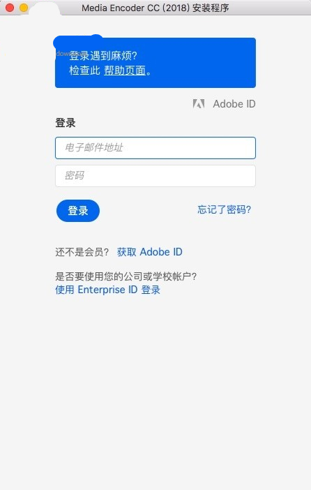 4.輸入你的adobe id和密碼,如果沒有的話可以注冊(cè)一個(gè),登陸后會(huì)要求你進(jìn)行驗(yàn)證,驗(yàn)證一下就可以了