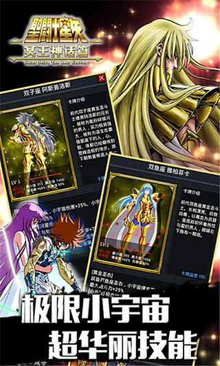 天馬流星拳安卓版是一款安卓手機的角色扮演游戲,看到名字相信玩家們已經(jīng)知道該游戲是以動漫圣斗士為題材,這部動漫也是陪伴小編童年為數(shù)不多的幾部動漫之一了,想要回憶童年就來來游戲中體驗一下吧。