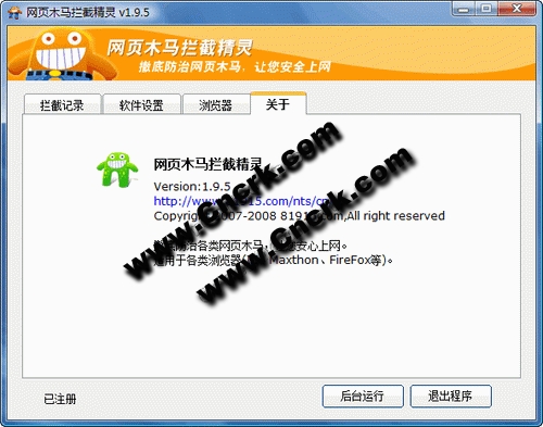 網頁木馬攔截精靈 V1.9.5 簡體中文綠色免費版 網頁木馬攔截精靈,就是為了解決這一問題而研發(fā)出來的專業(yè)軟件。它可以在網頁木馬試圖從網頁中潛入用戶系統(tǒng)時進行攔截,中止木馬病毒的潛入活動,從而達到防治的效果。經實踐使用證明,網頁木馬攔截精靈可廣泛適用于各類瀏覽器,如IE、FireFox、遨游等,攔截效果精確,實屬上網沖浪必備工具!