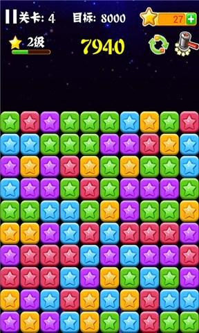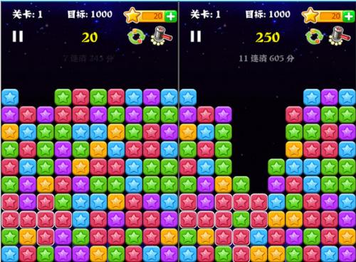 2、點(diǎn)擊三個(gè)或更多相同的星星可以消除它們