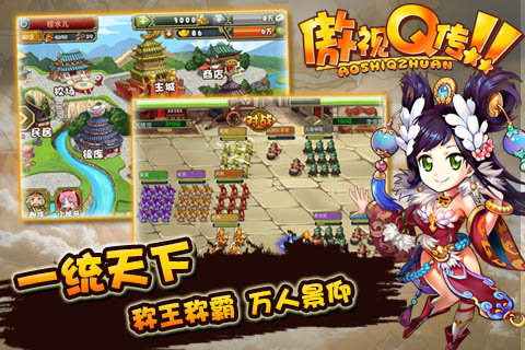 《傲視Q傳》是由傲視天地原班人馬傾力打造,在保留原有游戲玩法基礎(chǔ)上,針對手游用戶特點進行優(yōu)化,從傳統(tǒng)的鍵鼠操作轉(zhuǎn)變?yōu)樾屡d的觸控交互的一款策略對戰(zhàn)+角色養(yǎng)成游戲。同樣的玩法,全新的Q版風(fēng)格,給你全新的傲視體驗! 在游戲中玩家扮演著“亂世主公”的角色,通過武將招募及培養(yǎng),帶領(lǐng)自己的軍隊走向三國巔峰,同時能穿越到中國各歷史朝代,與歷史上的名將們戰(zhàn)斗并招募他們!【游戲特色】