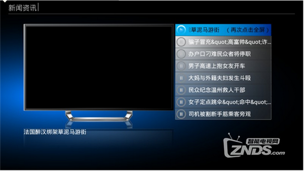 點(diǎn)擊進(jìn)入后小窗口預(yù)覽播放,點(diǎn)擊小電視機(jī)和右邊新聞標(biāo)題播放,選擇新聞標(biāo)題連續(xù)按遙控器OK鍵兩下進(jìn)入全屏播放。