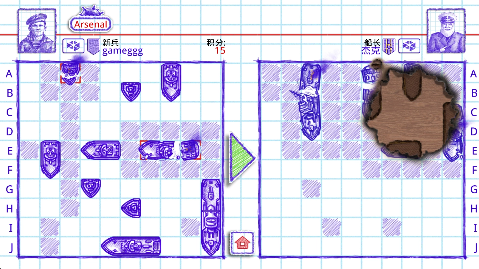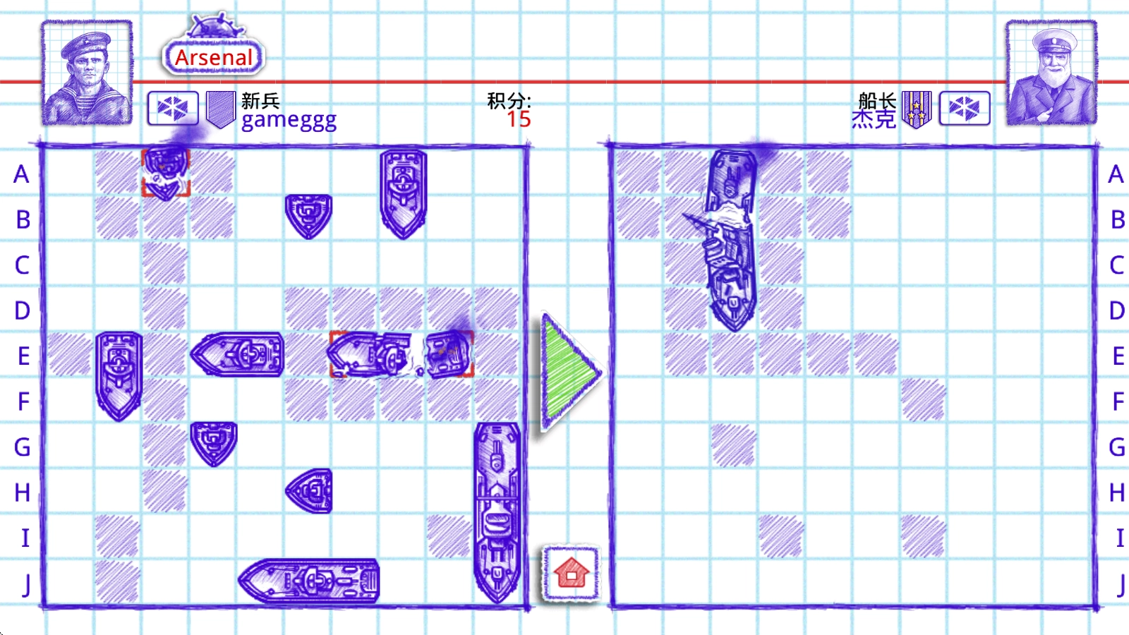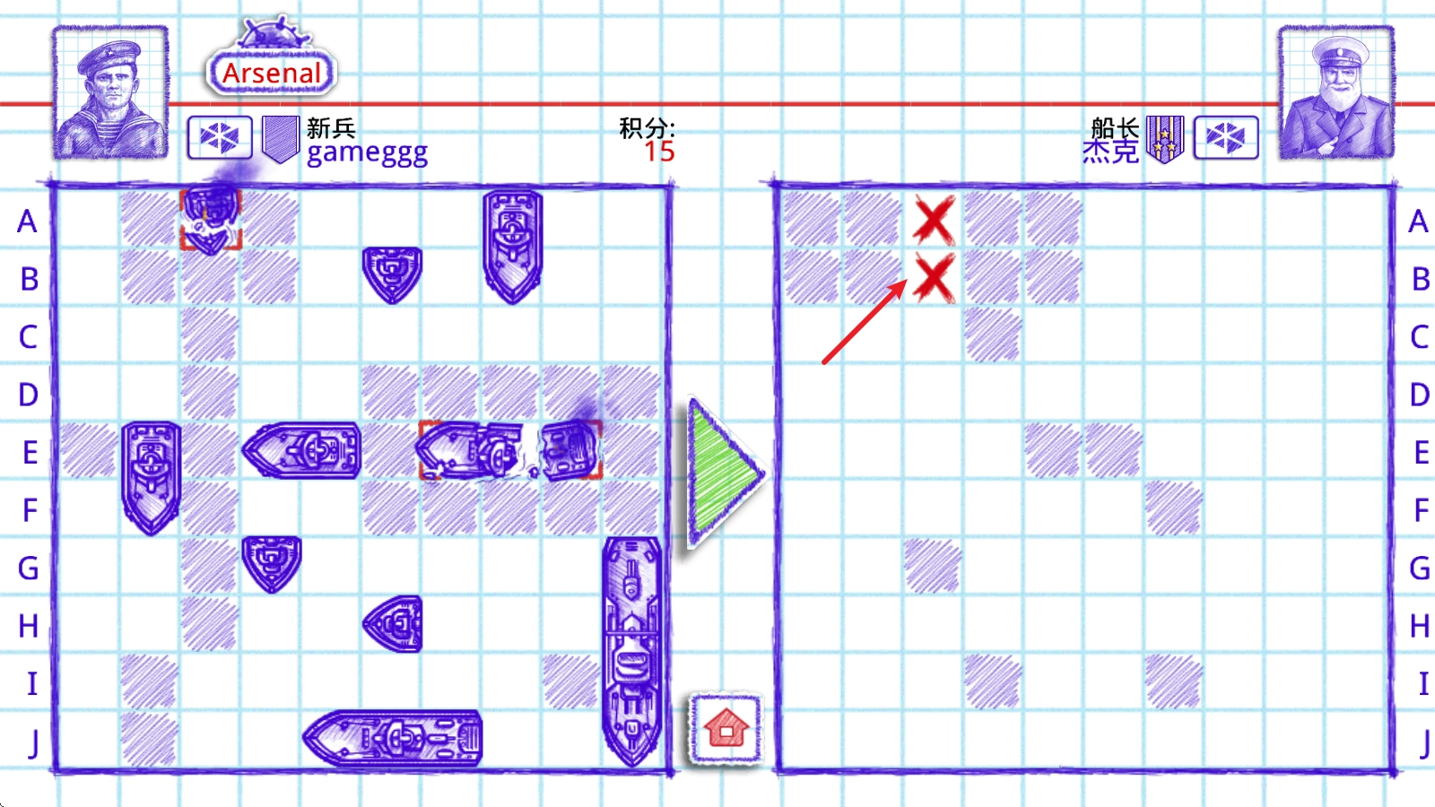 正式開始后,點(diǎn)擊對方的格子就能發(fā)射導(dǎo)彈進(jìn)行攻擊,要是沒擊中敵人的戰(zhàn)艦,就會交換攻擊方。