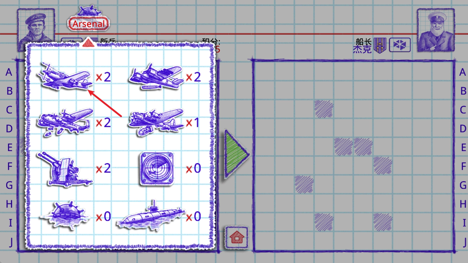接下來我們要把艦隊部署到格子里,每一艘戰(zhàn)艦都有其特定的覆蓋范圍。